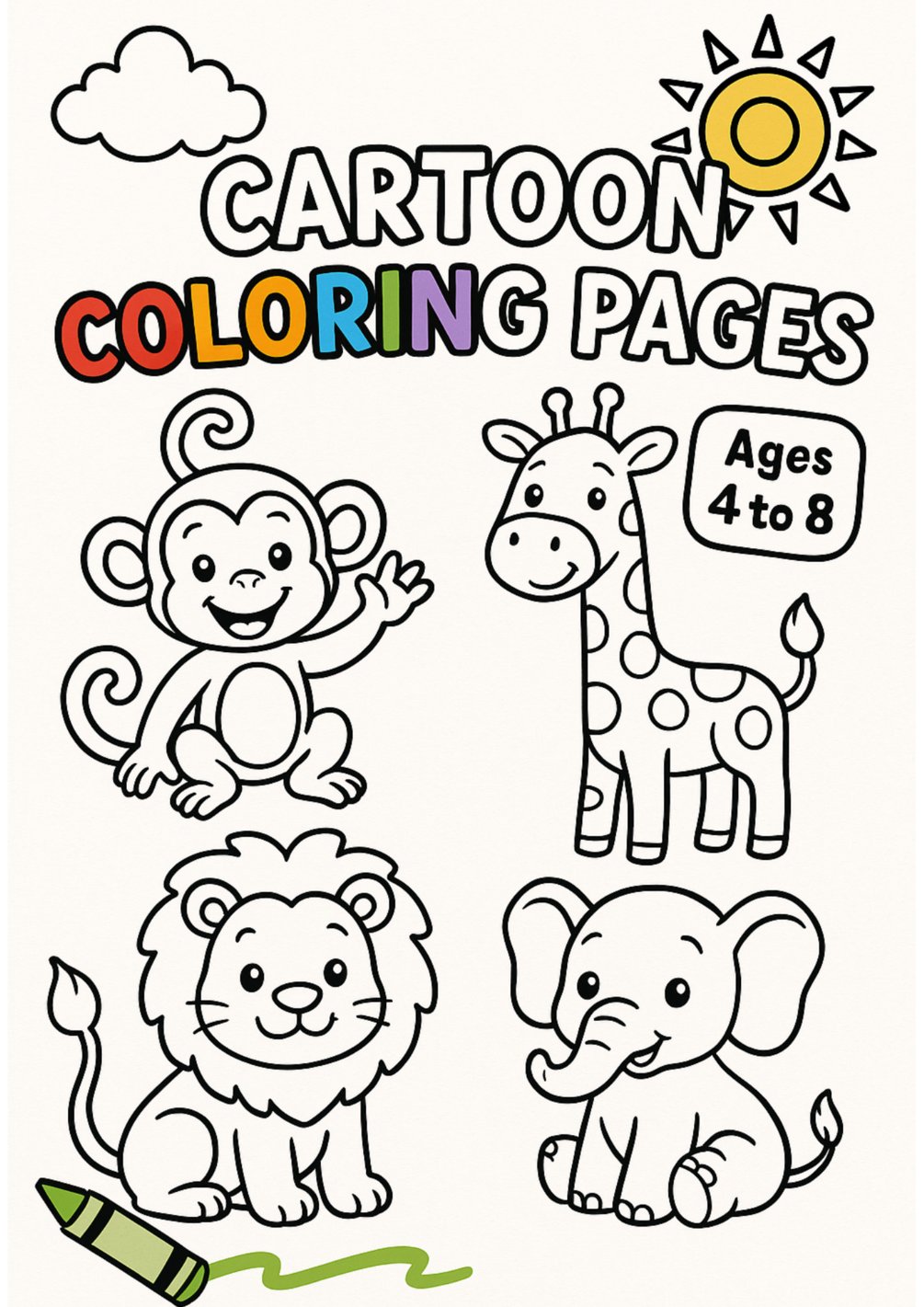 Cartoon Coloring Pages – Fun & Educational Activities for Kids (Ages 4–8)